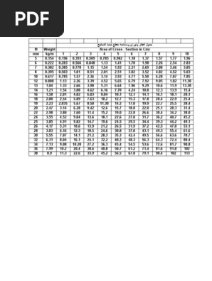 44480178 جدول أقطار وأوزان ومساحة مقطع حديد التسليح