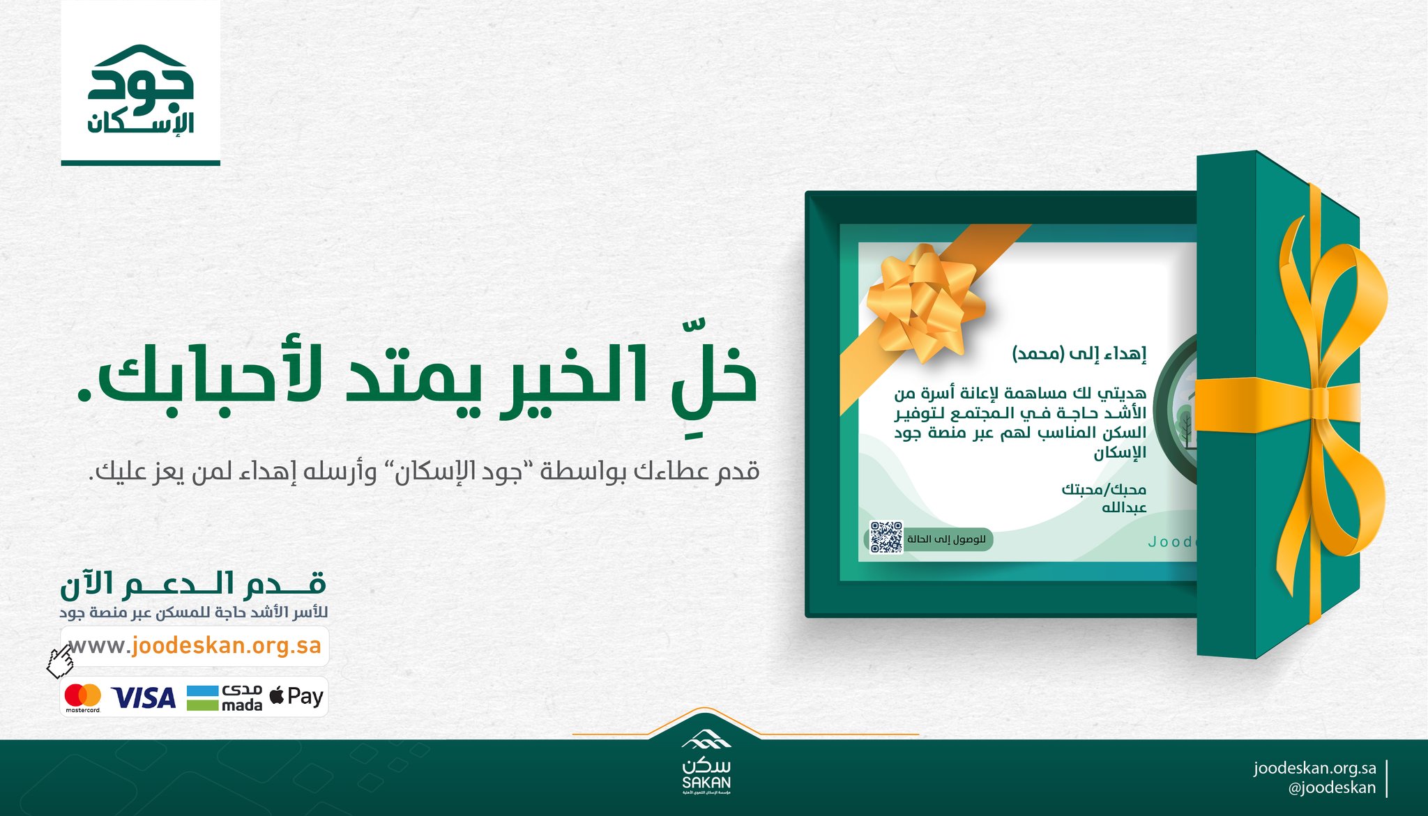 منصة جود الإسكان On Twitter هدية جود هدية لا تشبه الهدايا بها تفر ج كربا وتسعد قلبا عايد أحبتك بتبرع من جود الإسكان Https T Co Brtwndtbso Https T Co Kjytvelxja