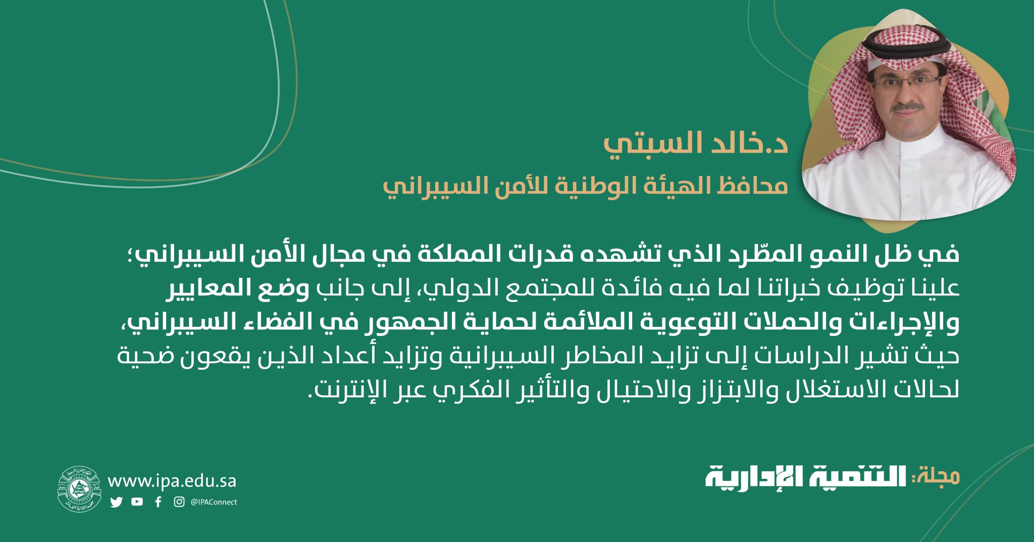 معهد الإدارة العامة Pa Twitter محافظ الهيئة الوطنية للأمن السيبراني د خالد السبتي يؤكد أهمية الحملات التوعوية لحماية الجمهور في الفضاء السيبراني Https T Co Rbalummm0i Https T Co Hhzozvlwsu