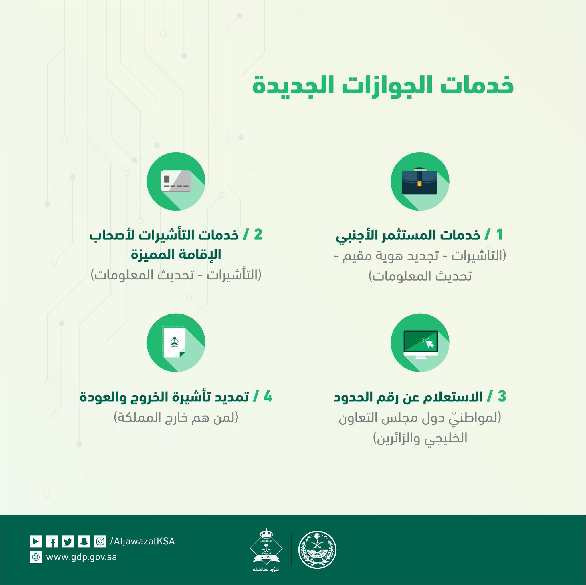 خدماتي الإلكترونية على تويتر خدمة تمديد تأشيرة الخروج والعودة لمن هم خارج المملكة كانت الجوازات اعلنت سابقا في نهاية 2019 اطلاقها عبر منصة أبشر واليوم تم اضافة الخدمة الى خدمات الرسائل الطلبات