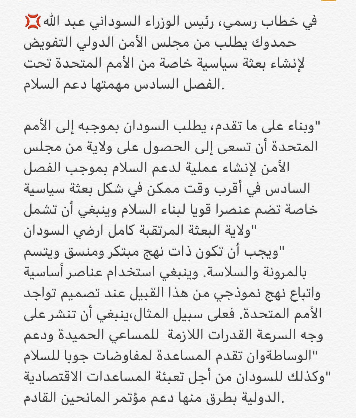Sudanese Translators For Change Stc On Twitter في خطاب رسمي رئيس الوزراء السوداني عبد الله حمدوك يطلب من مجلس الأمن الدولي التفويض لإنشاء بعثة سياسية خاصة من الأمم المتحدة تحت الفصل السادس
