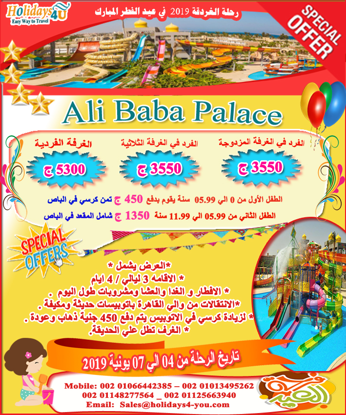 رحلات عيد الاضحى 2020 فى الغردقه رحلات الغردقه فى الصيف رحلات صيف 2020 عروض رحلات الصيف فى الغردقه فندق Ali Baba Palace Resort Hurghada