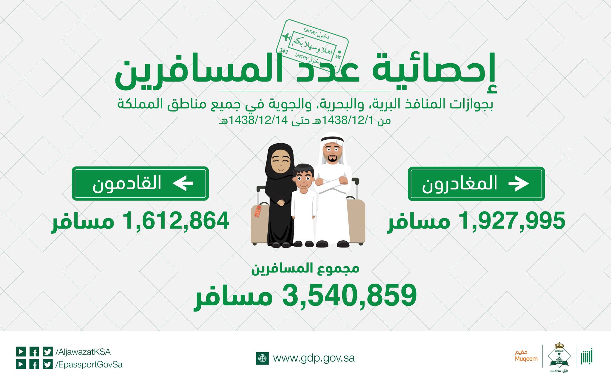 الجوازات السعودية On Twitter إنهاء إجراءات أكثر من ثلاثة ملايين مسافر خلال إجازة عيد الأضحى المبارك