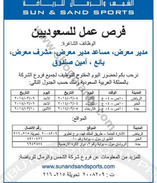 وظائف مدير معرض ومساعد مدير ومشرف معرض وبائعين وامناء صناديق في الرياض والخبر وجدة
