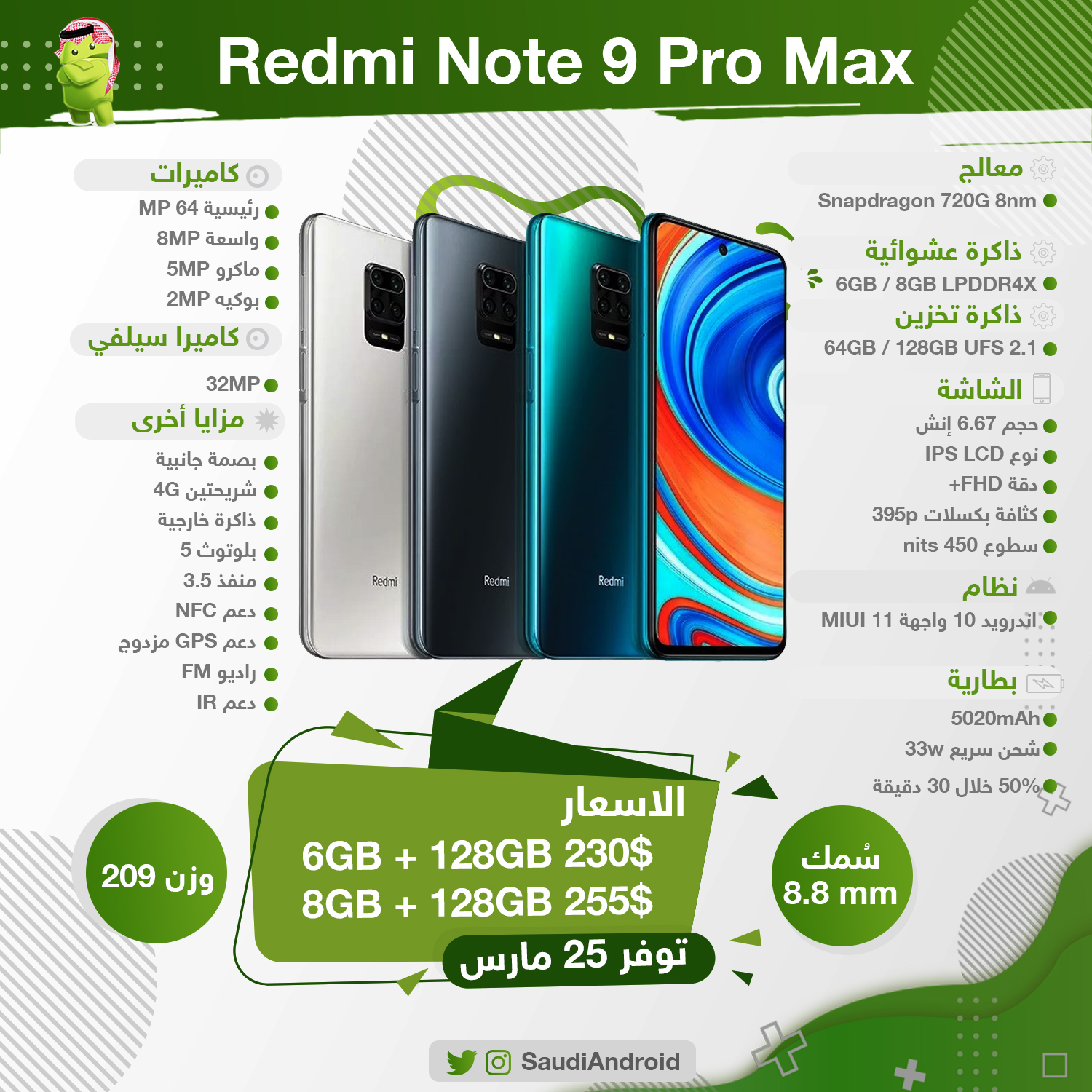 سعودي اندرويد On Twitter جديد شركة شاومي هاتف ردمي نوت 9 برو ماكس مواصفات مزايا هاتف Redmi Note 9 Pro Max Xiaomi Redminote9promax Https T Co Nu2i3dq8qa